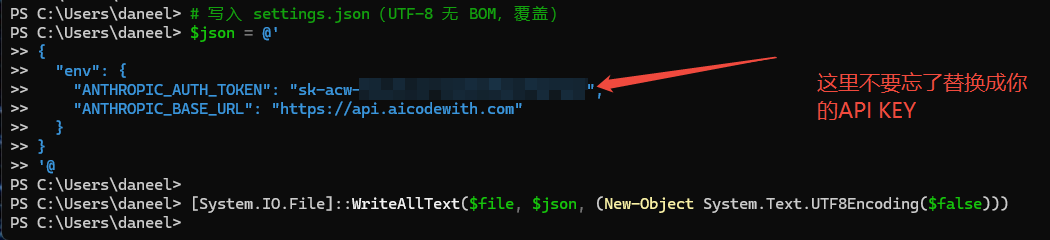13 "ANTHROPIC_AUTH_TOKEN": "在这里替换成你的_API_KEY",